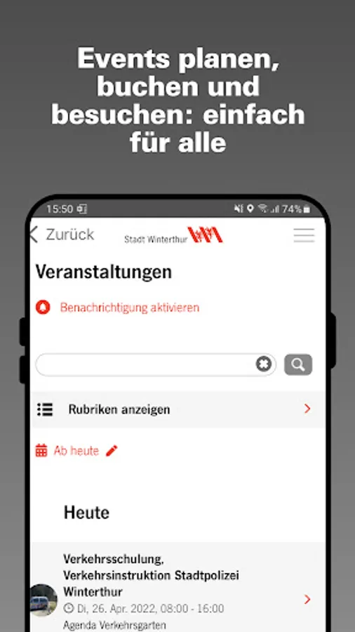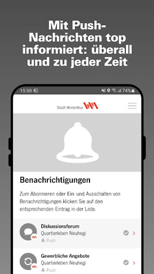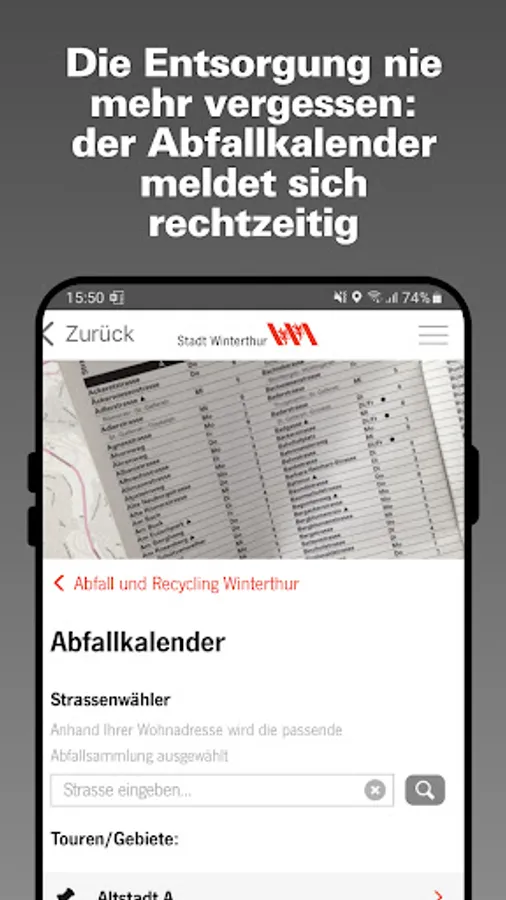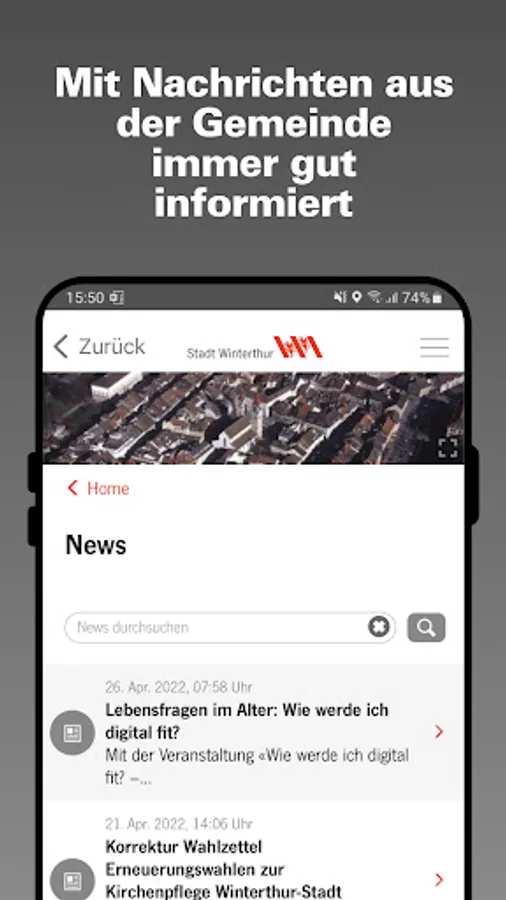 The app includes the city of Winterthur Information from politics and culture. See, inter alia, the City News and the whole issue of waste Digital waste calendar (both as a push or email possible), a directory of cultural institutions, sports facilities, the city map and the trail Winterthur.
