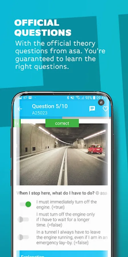 Best selling car theory App for the official theory examination in Switzerland 2022 - with all the official theory questions from ASA for the driving license.