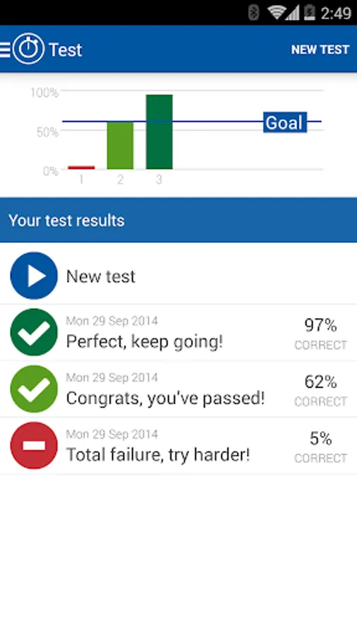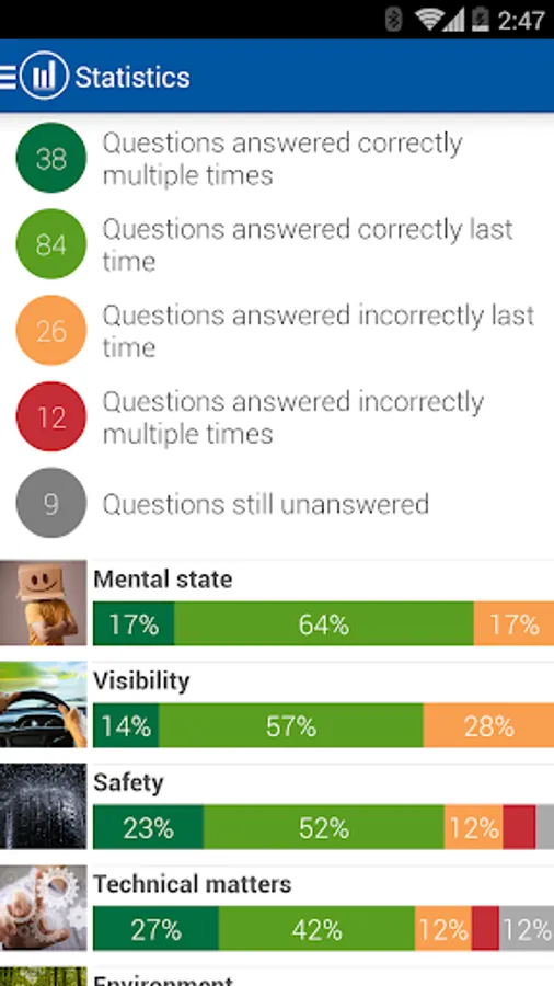 5. PROGRESS MONITOR & CHARTS - See how well you are doing and know when you are ready for the Driver CPC Theory Test.