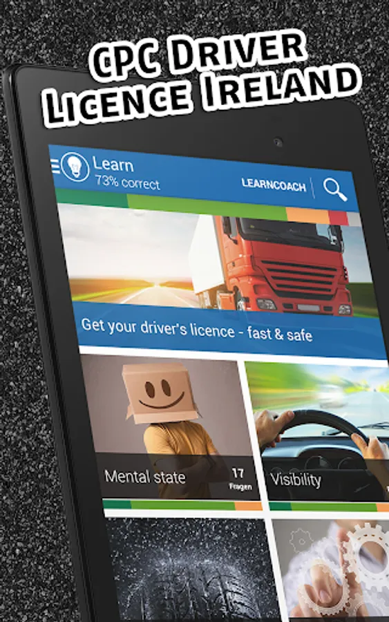 Official Irish Driver Theory Test Questions (DTT) Award-winning educational software with all of the OFFICIAL Irish Driver CPC Bus and Truck theory questions and answers. This is the FULL version with all questions and functionality, not just a taster. For professional truck drivers. Study, practice the driving licence questions and pass your exam the first time around!