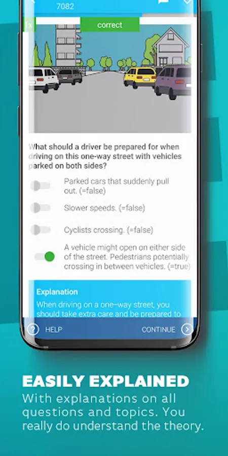 4. EXPLANATIONS - The explanations will help you understand and learn the correct answers according to the highway code.
