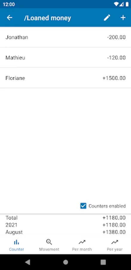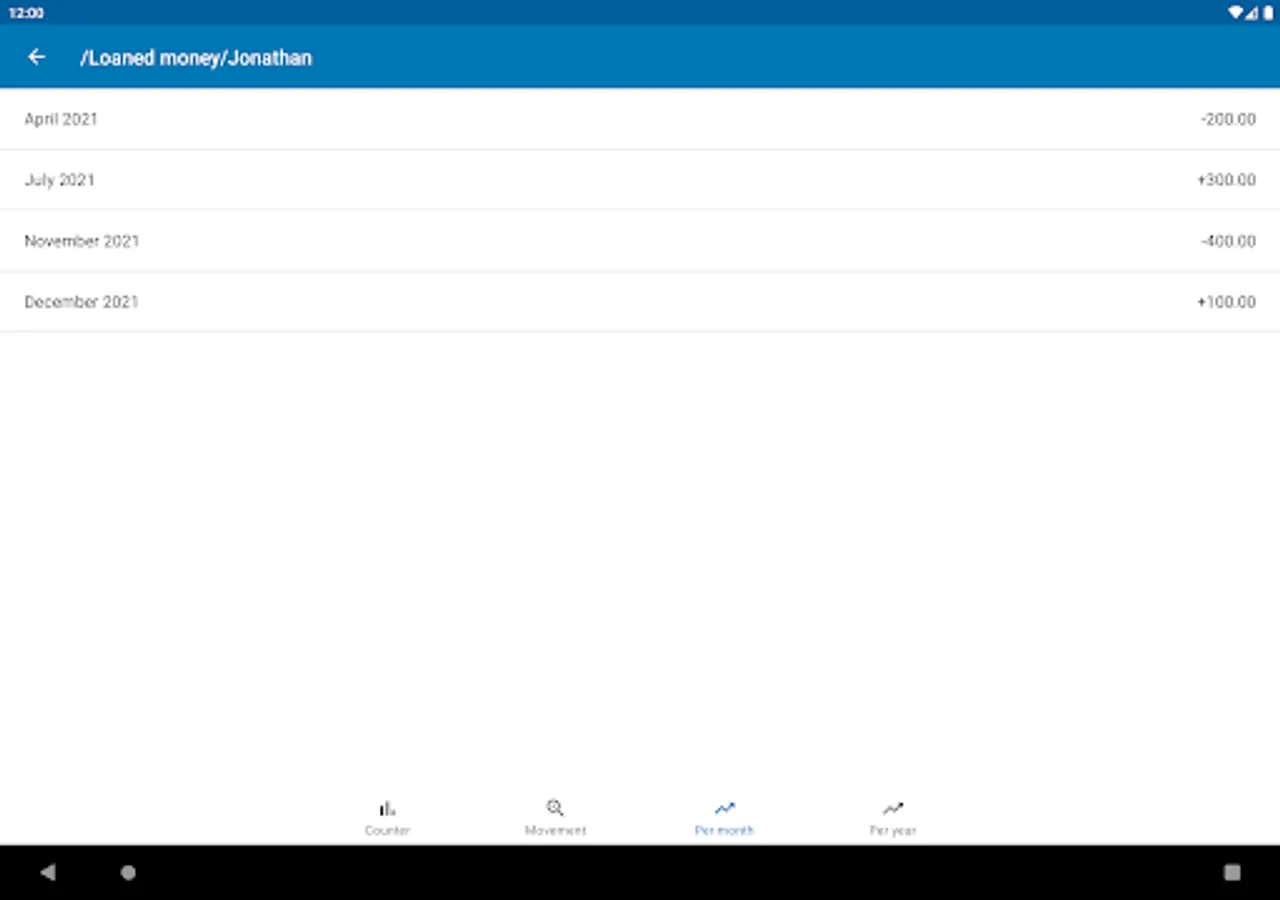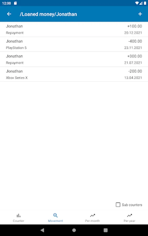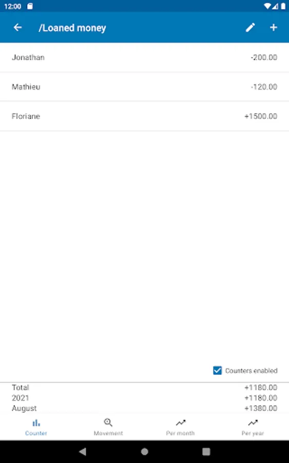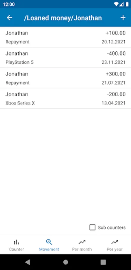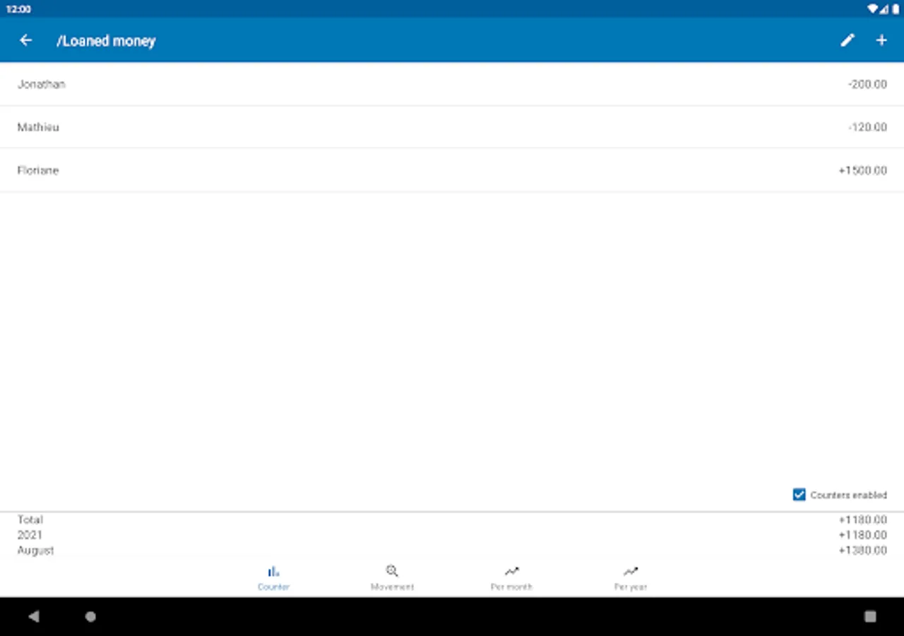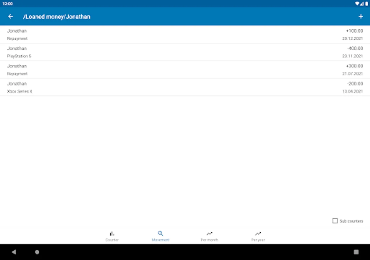 This counter manager allows you to work with counters hierarchically. It calculates totals and subtotals globally, by month or by year.