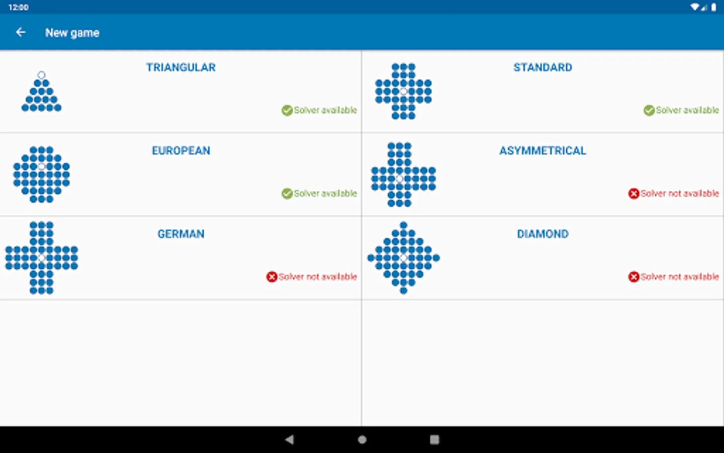 Have fun with the six famous variants playable for free in this game: triangular, standard, European, asymmetric, German and diamond.