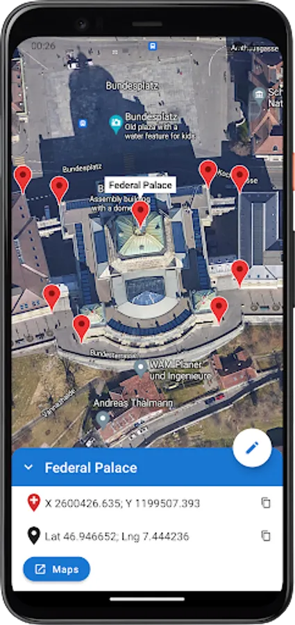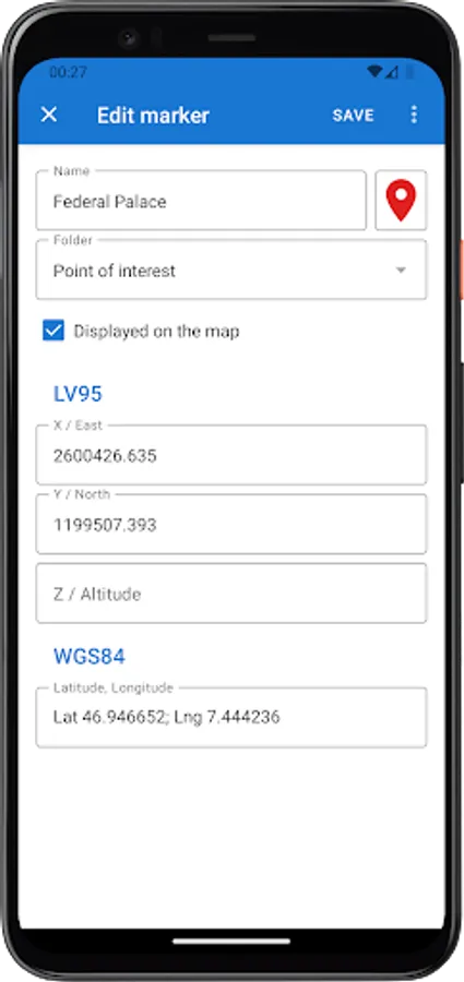 Increase your productivity with Point Me. Manage, display, import and share LV95 markers directly on Google Maps from your Android device.