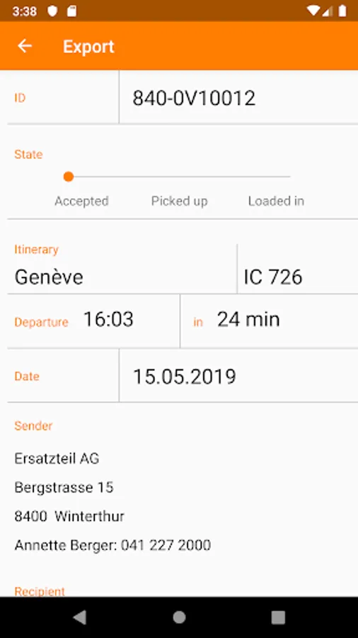 The app shows an overview of all pickups and deliveries. Shipment and train information can be accessed for each order. The status for each shipment can easily be shared with swissconnect.