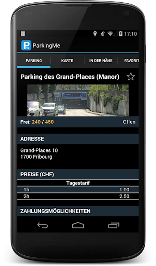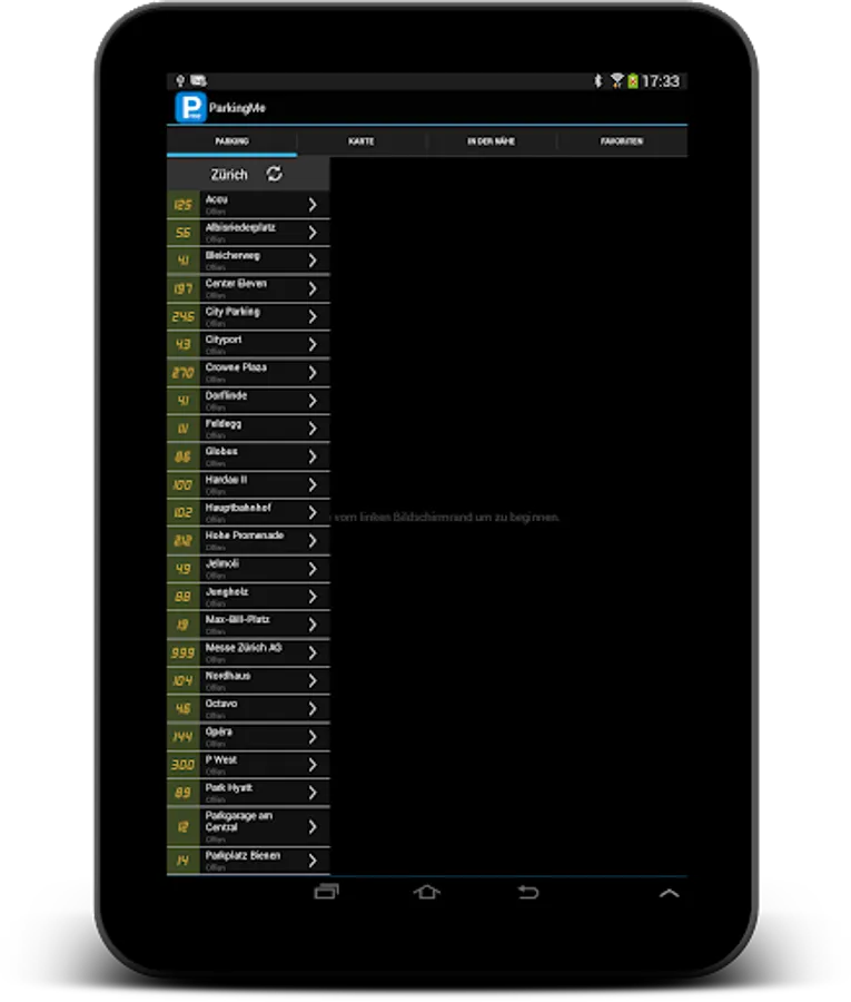 ParkingMe helps you find a parking space. Available are all Swiss cities, which have set up a parking guidance system (PLS).
