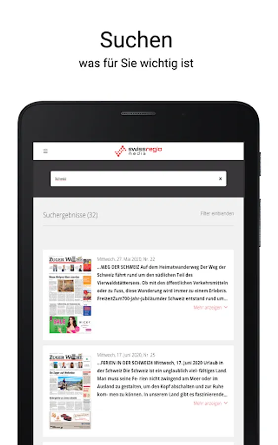27 newspapers from German-speaking Switzerland for free in this app - download now.