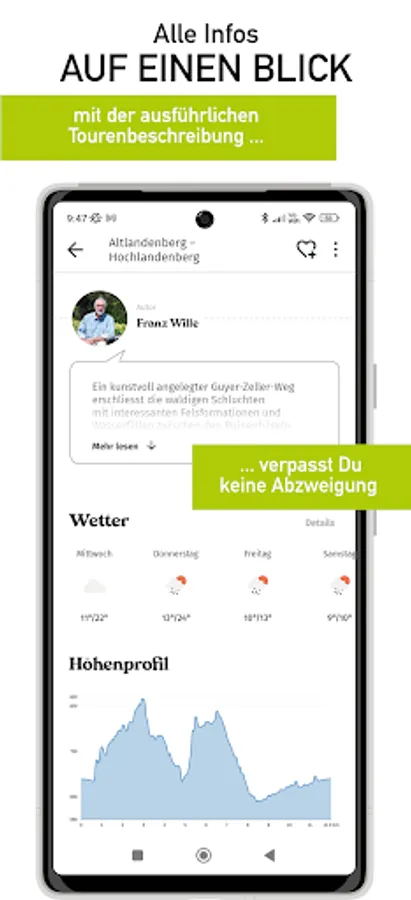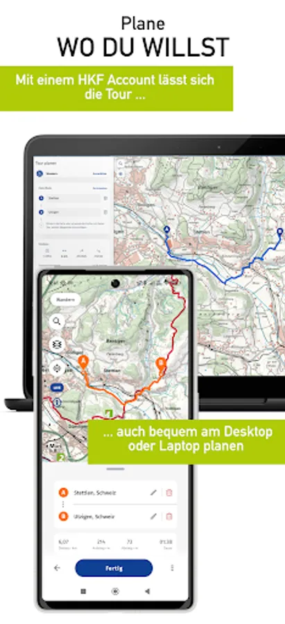 Ob kleine oder große Abenteuer, die Outdoor-Welt erwartet Dich direkt vor Deiner Haustür –Du musst nur losmarschieren und Dich von unseren Karten führen lassen. Wir bieten Dir nicht nur eine super Kartografie, sondern auch alle möglichen Funktionen um Dich für Deine Touren inspirieren zu lassen und sie direkt zu planen. Du kennst das Ziel, wir den Weg!