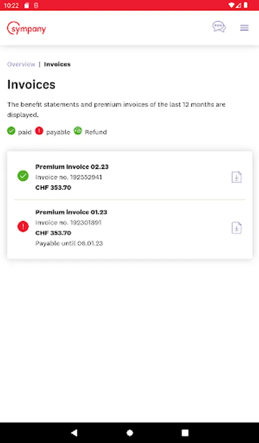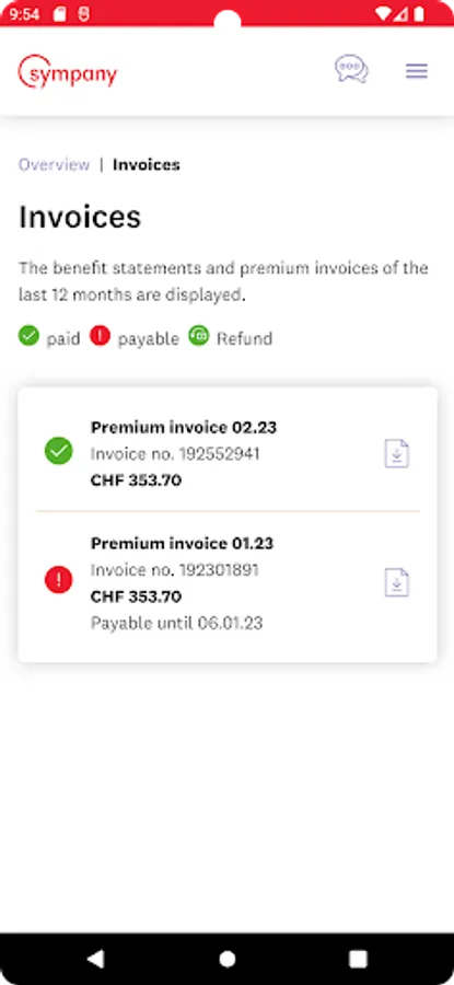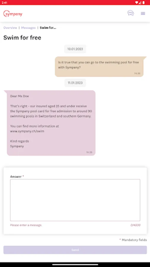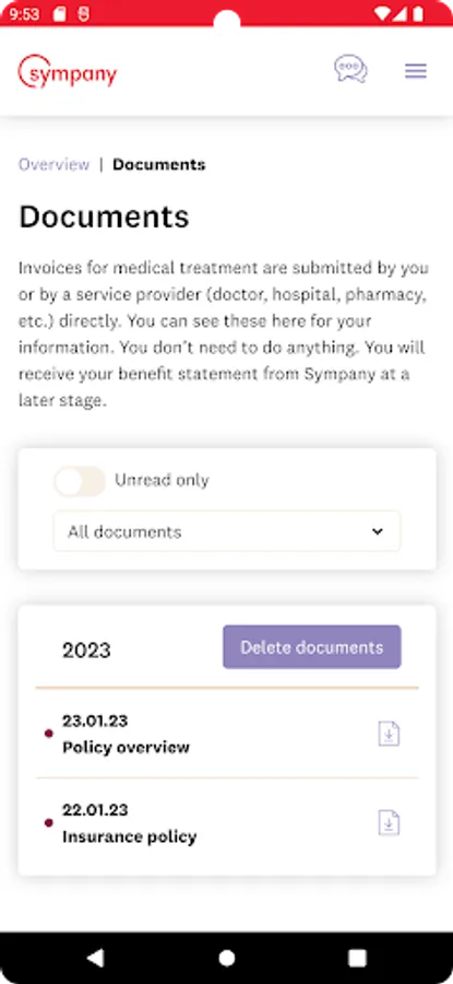 • Receive notifications: if you want, you can be informed via push notification, text message or e-mail when you receive new messages or documents in mySympany"
