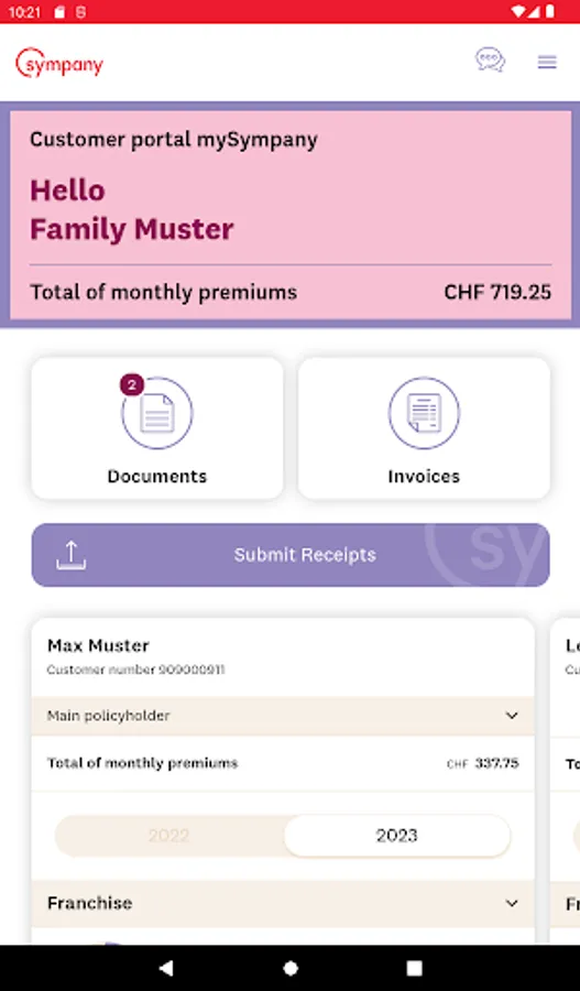 • Present your digital insurance card when you visit your doctor or purchase medication, for example (only valid in Switzerland)