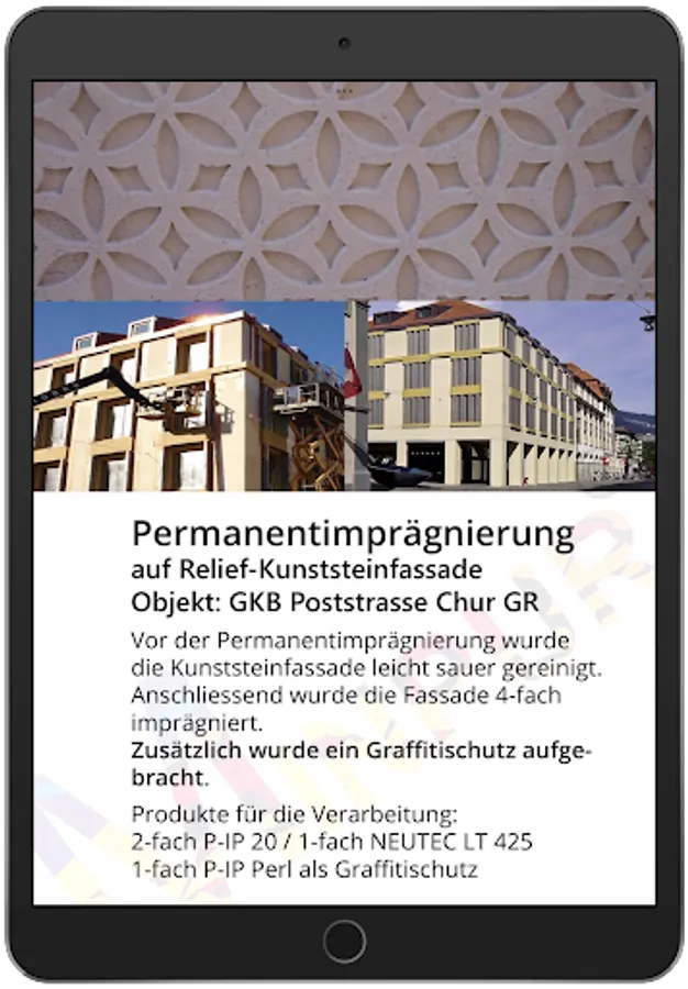 For each system, we show numerous reference objects with a description of the products used and the selected processing technology.