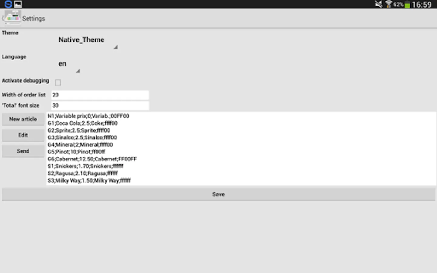 * Export of article list and sales log by e-mail