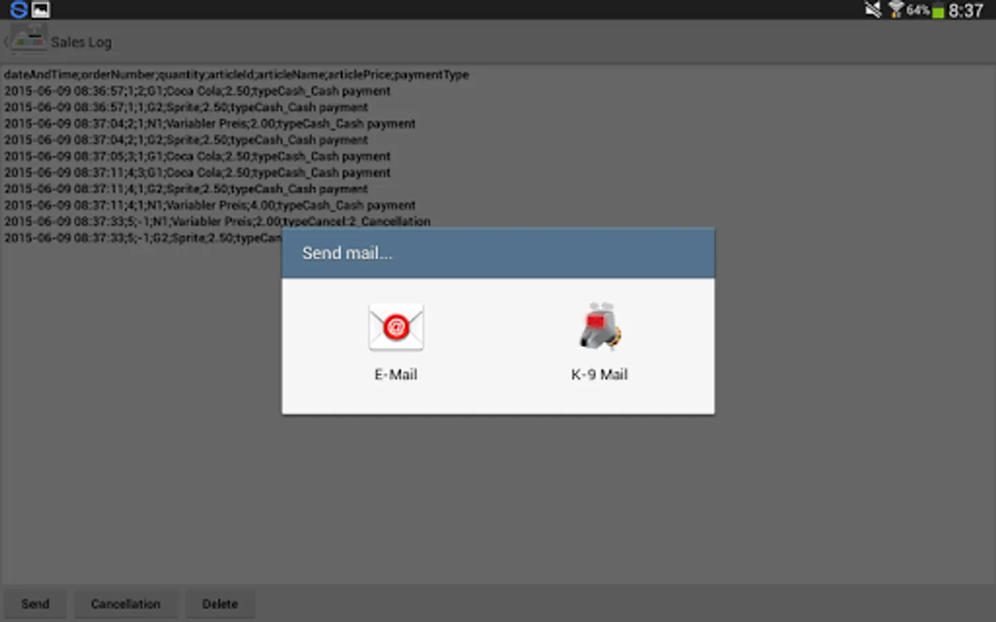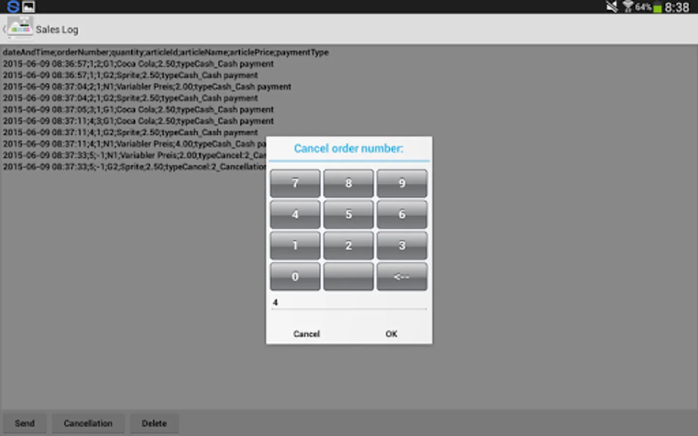 * Sales log with cancellation of orders