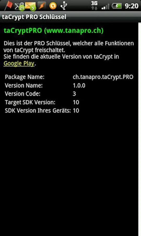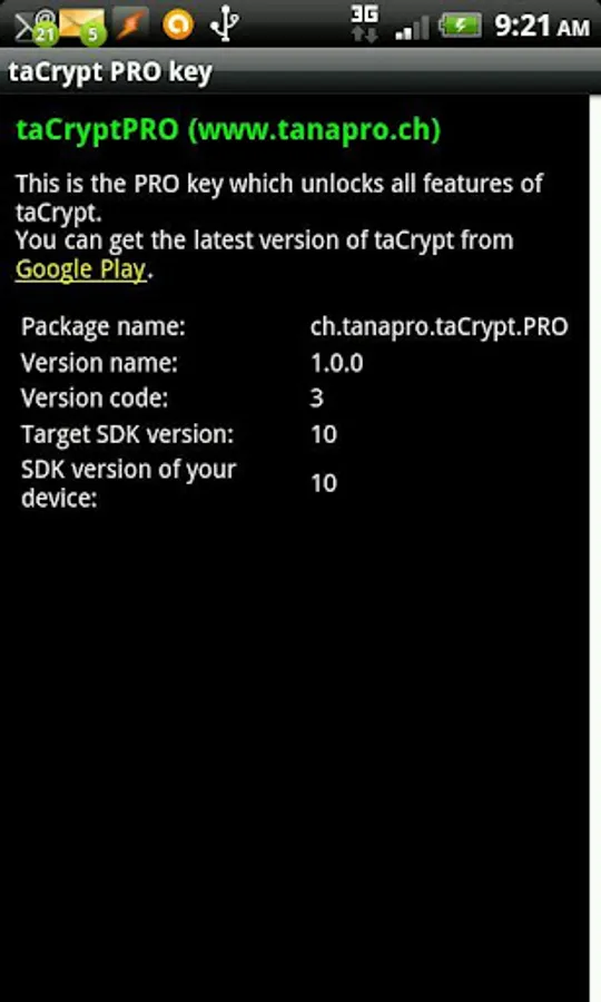 This is the PRO key that unlocks all features of the Android application taCrypt.
