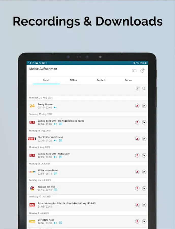 Teleboy offers you free live TV on over 300 channels - over 170 of them in HD, as well as the TV program for the next 14 days.