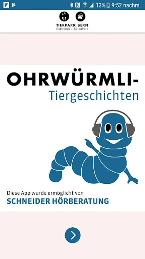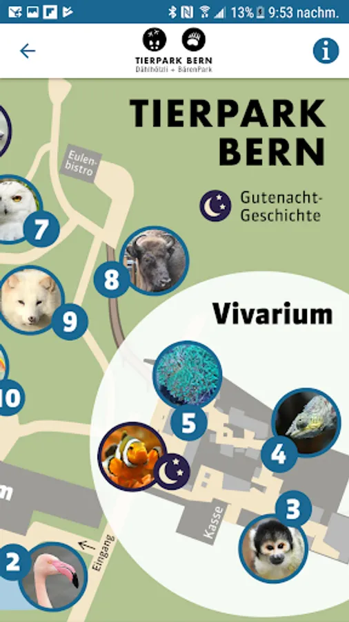 Our tour starts at the main entrance at the ticket office of Tierpark Bern, Dählhölzli, where you will make a journey of discovery together with the Ohrwürmli. The other 13 stories then tell each one at the respective stations of the colorful life of the Dählhölzli animals. And as a reminder, take home three bedtime stories.