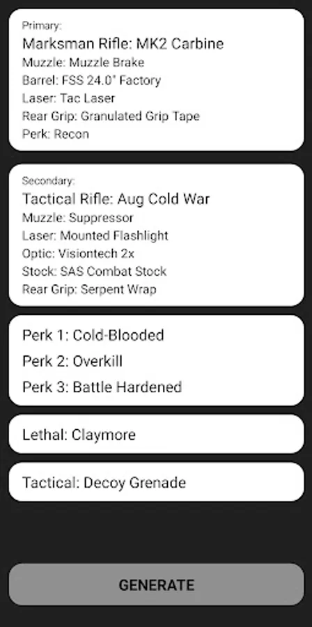 Are you getting bored by using the same meta loadout over and over again? Then this is the perfect app. Generate new random loadouts to have a fun twist in your game... Who knows, maybe you will find the next meta or your new favorite loadout!