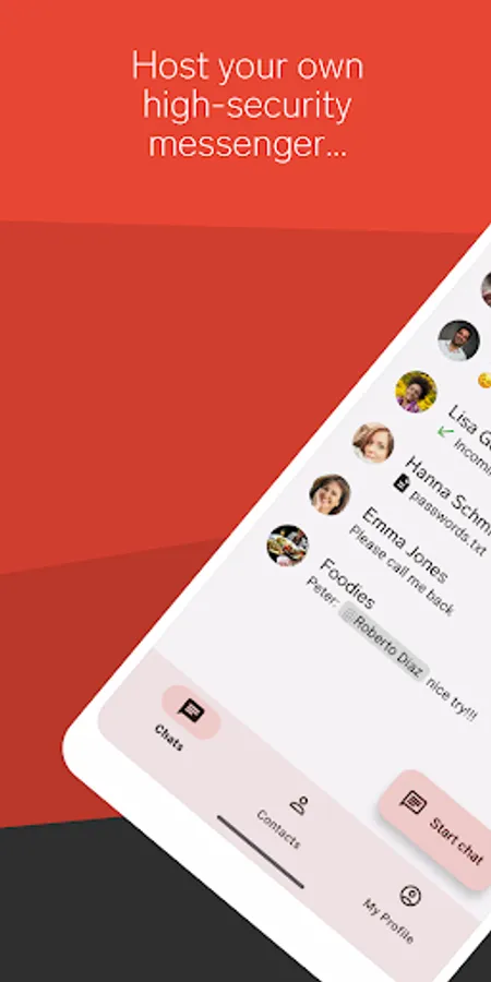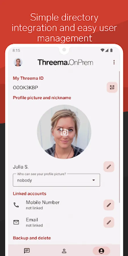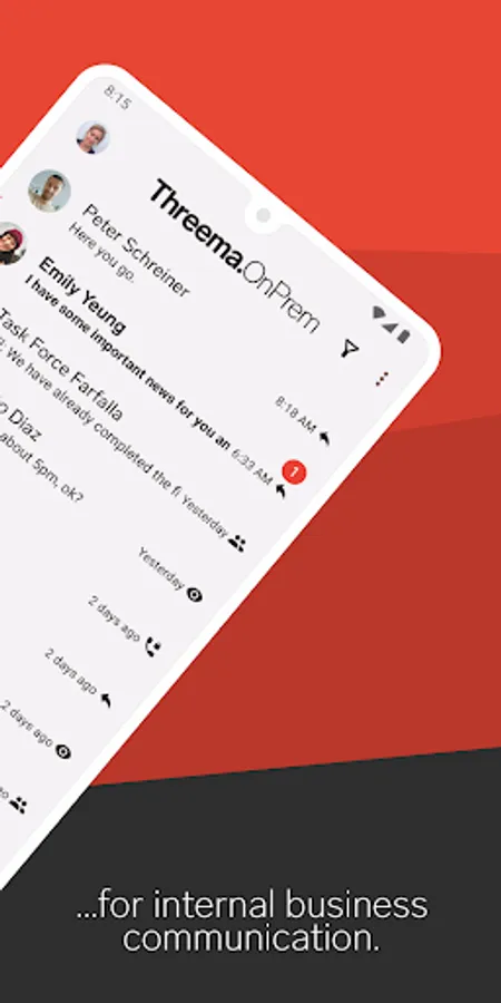 Threema OnPrem is the self-hosted messaging solution for organizations that require maximum security. The combination of Threema’s well-established security architecture and total data ownership results in a self-contained chat environment that is unparalleled in terms of confidentiality and is suitable for professional use in government agencies, police forces, and industrial companies.