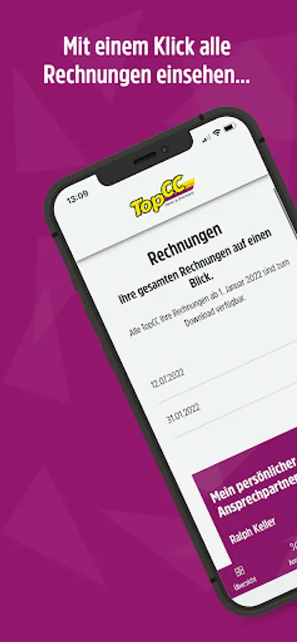 Benefit from numerous offers, services and much more in our app. You can therefore conveniently access your invoices, sales evaluations or profile data at any time while on the move. In addition, you always have your digital customer card with you for shopping at the nearest TopCC. Therefore, you no longer need to fill out an additional form if you forget your physical card.