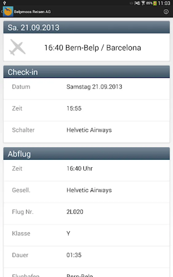 This app from Belpmoos Travel offers you all the relevant information from your trip.