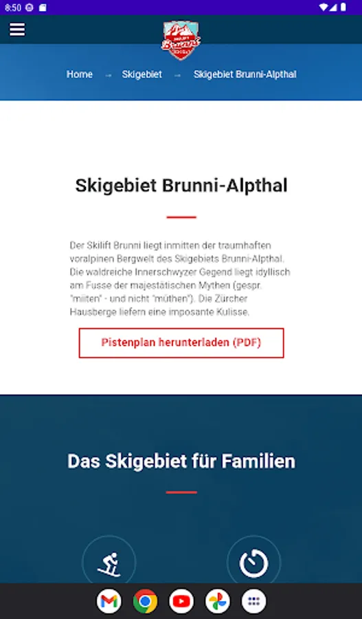 The app provides access to price information, weather and slope reports as well as the offers of the Brunni ski lift in Alpthal.