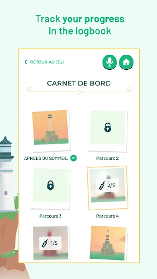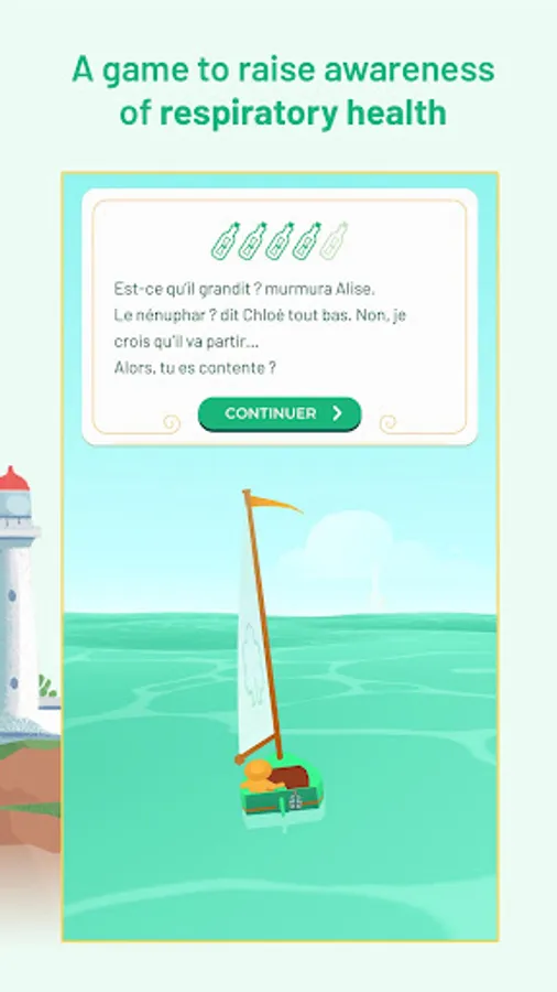 The player is led to operate, with his breath, a small boat and to discover, along different routes, messages - fragments of stories - that will lead him to lighthouses stages, symbolizing the main respiratory pathologies.