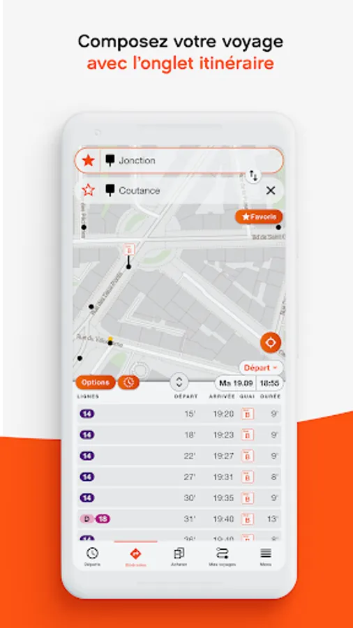 • Immediately see the next departures in your vicinity