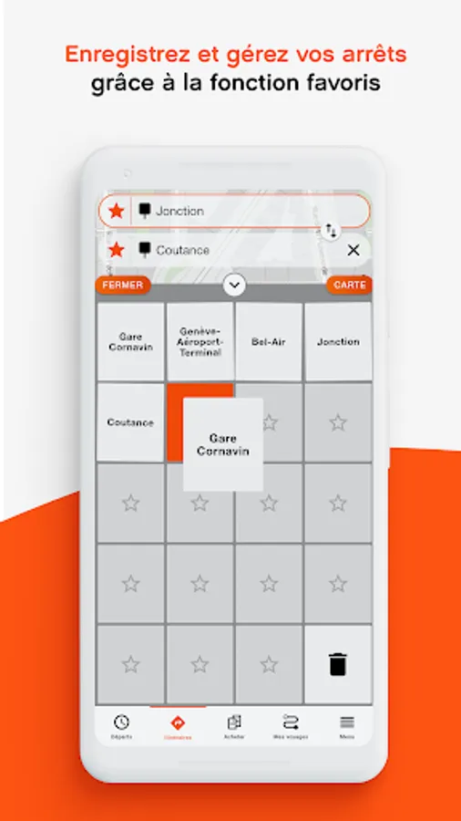 • Directly on the map in "Departures" (top right): manage your favourite stops