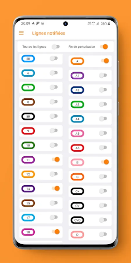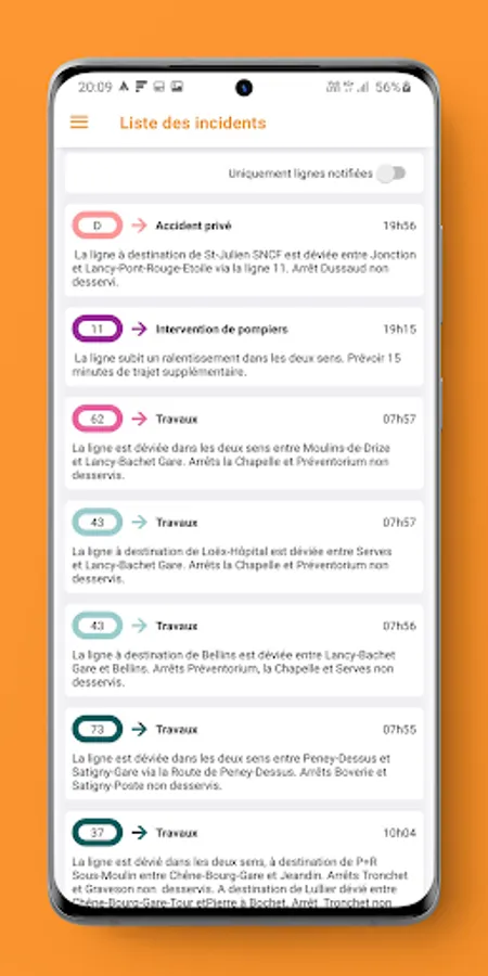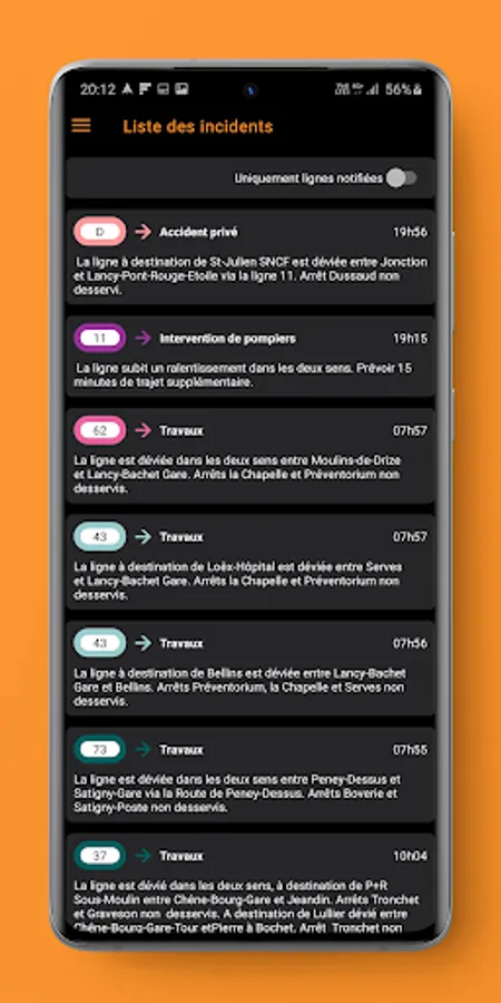 -> You can choose the lines you want to be notified of or receive all notifications of network incidents (be careful it can represent a lot of notifications per day)