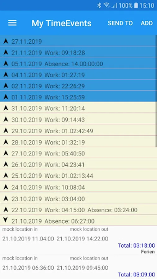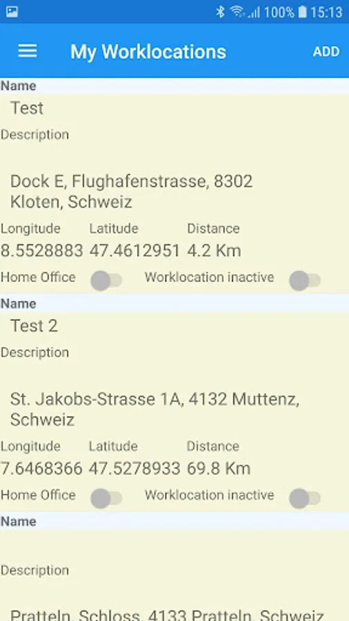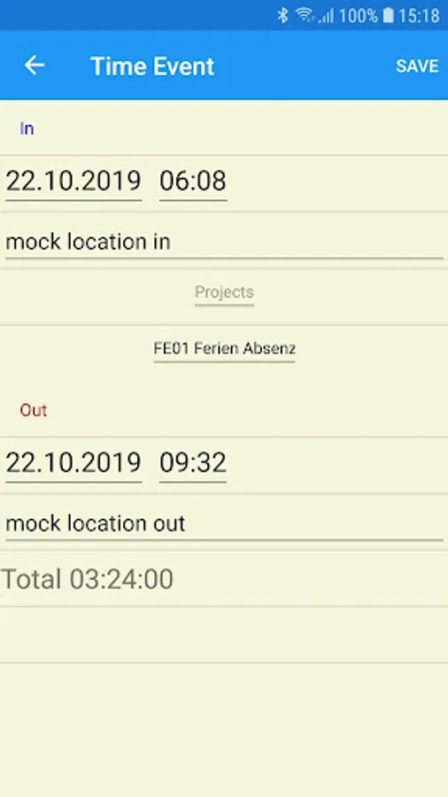By adding work locations, personal working, absence and project times can be recorded GPS supported.