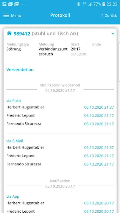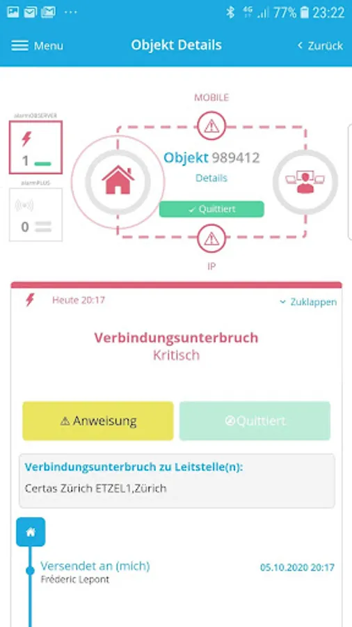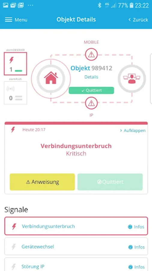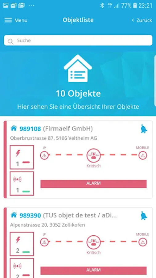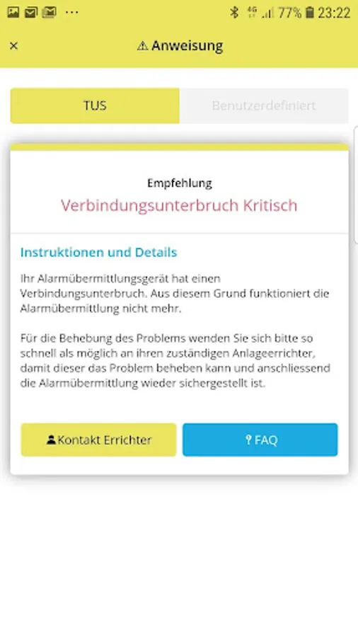 The TUS AIN MobileApp is used to receive notifications of the alarmOBSERVER service (connection monitoring of alarmNET systems).