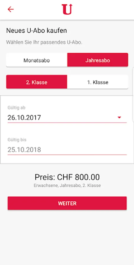 You can find more information about the U-Abo on www.u-abo.ch. On our website, you can inform yourself about the compatible tariffs for purchase or transfer within the U-Abo app. In general, the U-Abo app supports only personal seasonal tickets with validity within Switzerland.