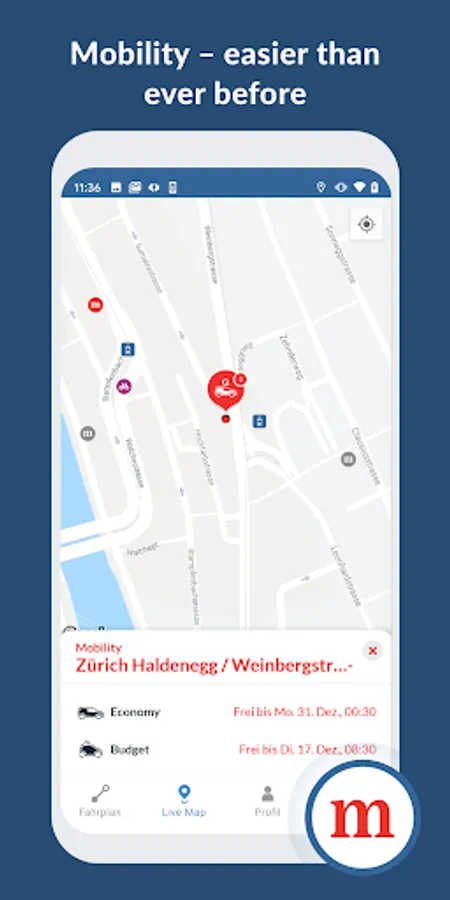 With the new availability display on the live map you can quickly and easily get an overview of the vehicles near you. It has never been so easy to find the next free Mobility vehicle.