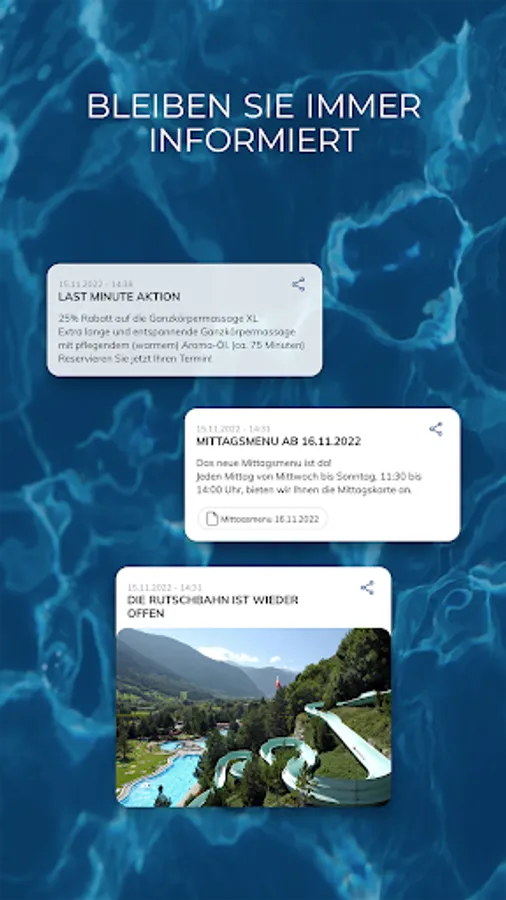 True to our corporate motto "immerse yourself and relax", we would like to offer our guests a relaxing bathing and wellness experience. Come by and visit our new facilities: We look forward to seeing you.