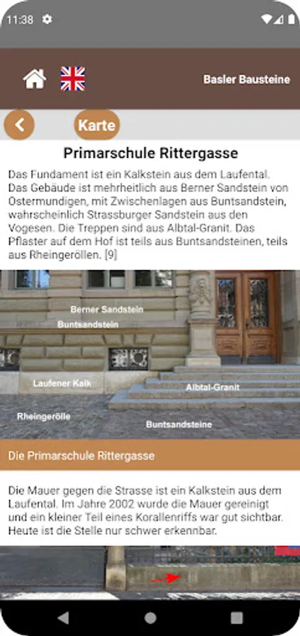A small guide to the building stones in the city of Basel. Some points of interest are presented in more detail. Thereby one learns which stones were used, where they came from and and how they were transported. On a short excursion we encounter the most important types of rocks which are characteristic as building stones for the city of Basel: From the medieval buildings with sandstones and limestones from the surroundings up to the modern times with exotic Gneisses from India or China.