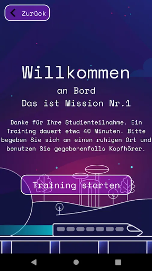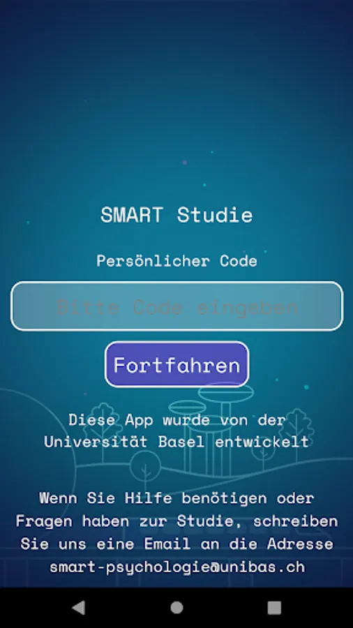 Participants in the SMART study are asked to complete the training for four self-selected days per week over a period of three weeks. Please log in to the SMART application using the code we sent you via email.