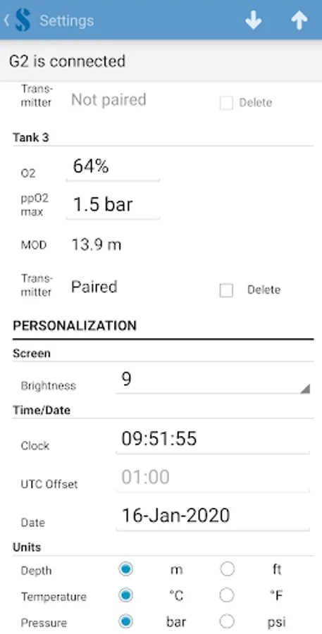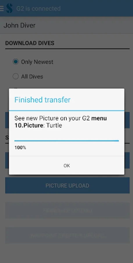 • Upload pictures to your G2 - sketches of dive briefing, maps of your dive site and navigation hints you'd like to check during diving