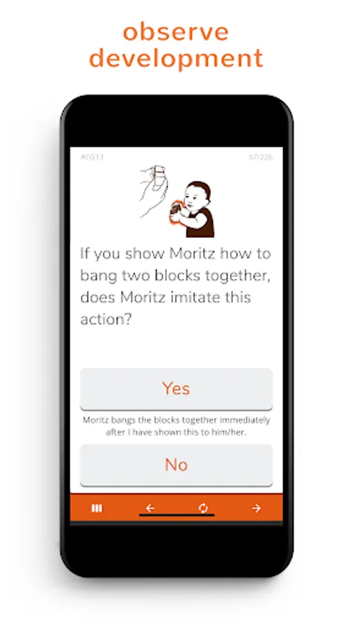 By doing this, you will not only learn about the emergence of your child's abilities but also help us at the University of Zurich to understand the individual development of children and evaluate in what order children master new skills.