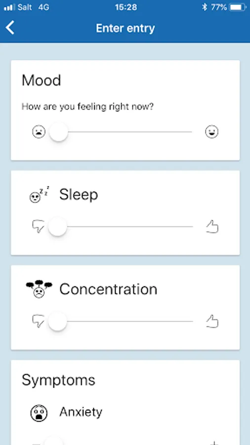 -Logbook: Here you can write entries about your mood, mental health problems, any medication you are taking and special events.