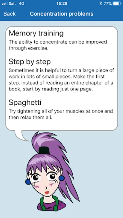 Please note that this app is not a replacement for appropriate medical treatment and management. The app is not intended to replace medical treatment, nor should it be viewed as such. It is not a medical product in the sense of the Swiss Medical Devices Ordinance Act (MepV). If you are experiencing any of the symptoms listed under in the app under "Symptoms" and these are causing problems in your life, you should talk to someone, and consider getting help from a mental health specialist.