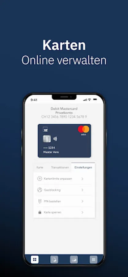 • VZ Debit Mastercard & credit cards: adjust limits and manage geoblocking or card blocking
