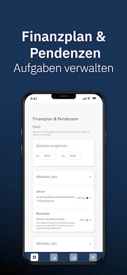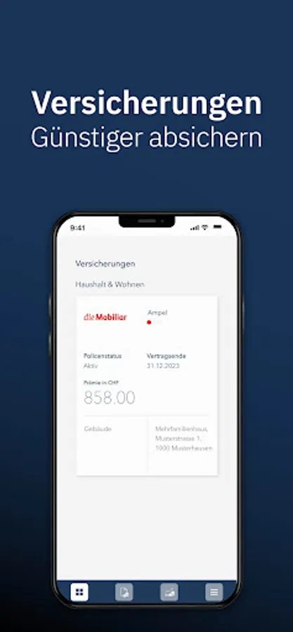• Digital insurance folder: file policies with premiums and benefits. A traffic light system shows when better benefits or lower premiums can be obtained