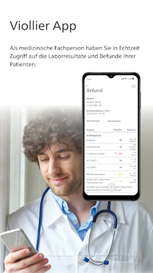 As a healthcare professional, the Viollier app gives you real-time access to all your patients' lab results (including the results of lab equipment connected to the v-box® from your practice lab) in real time, as well as pathology, cardiology, and pneumology findings.