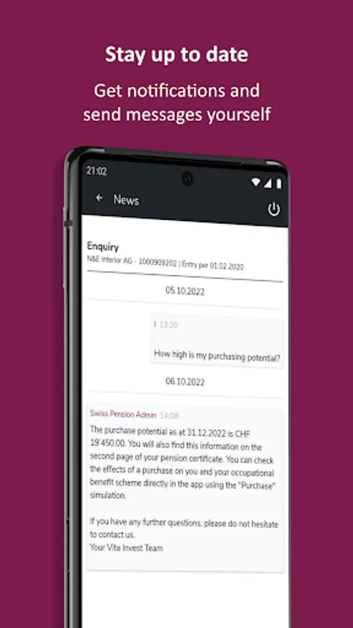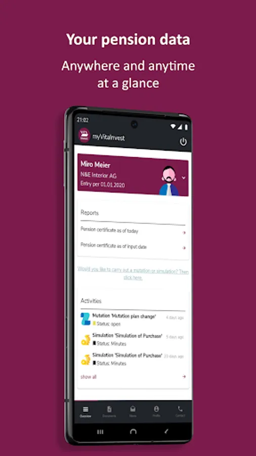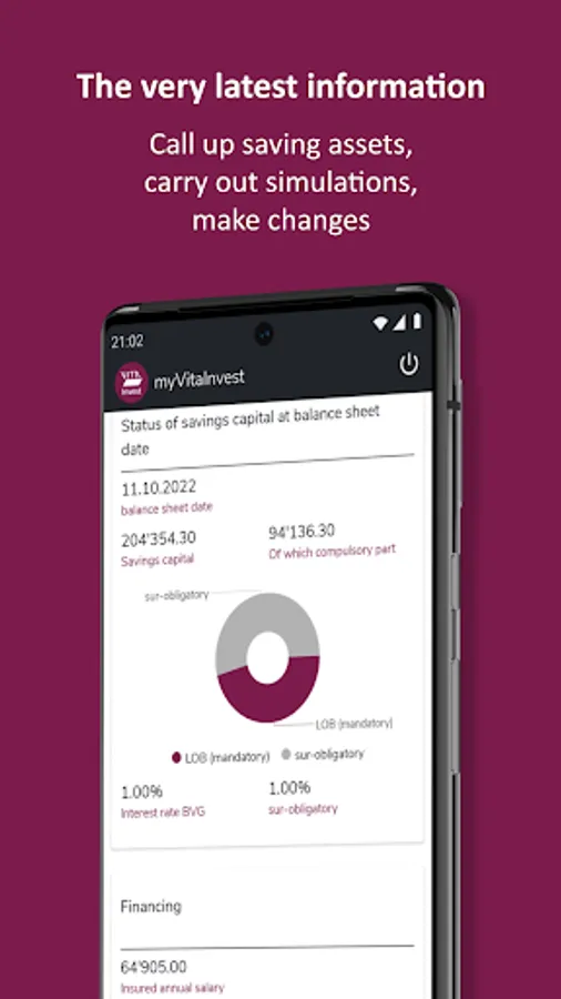 With myVitaInvest you can keep an eye on your occupational benefits. Thanks to the Vita Invest app, you have flexible access to your pension data, can edit it and perform simulations and calculations.