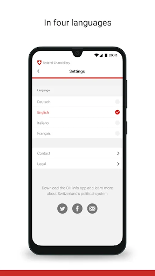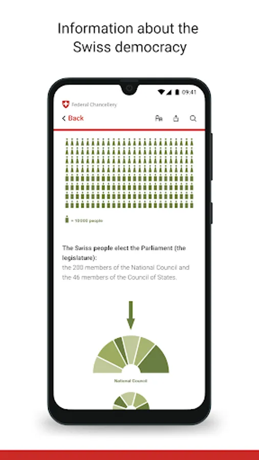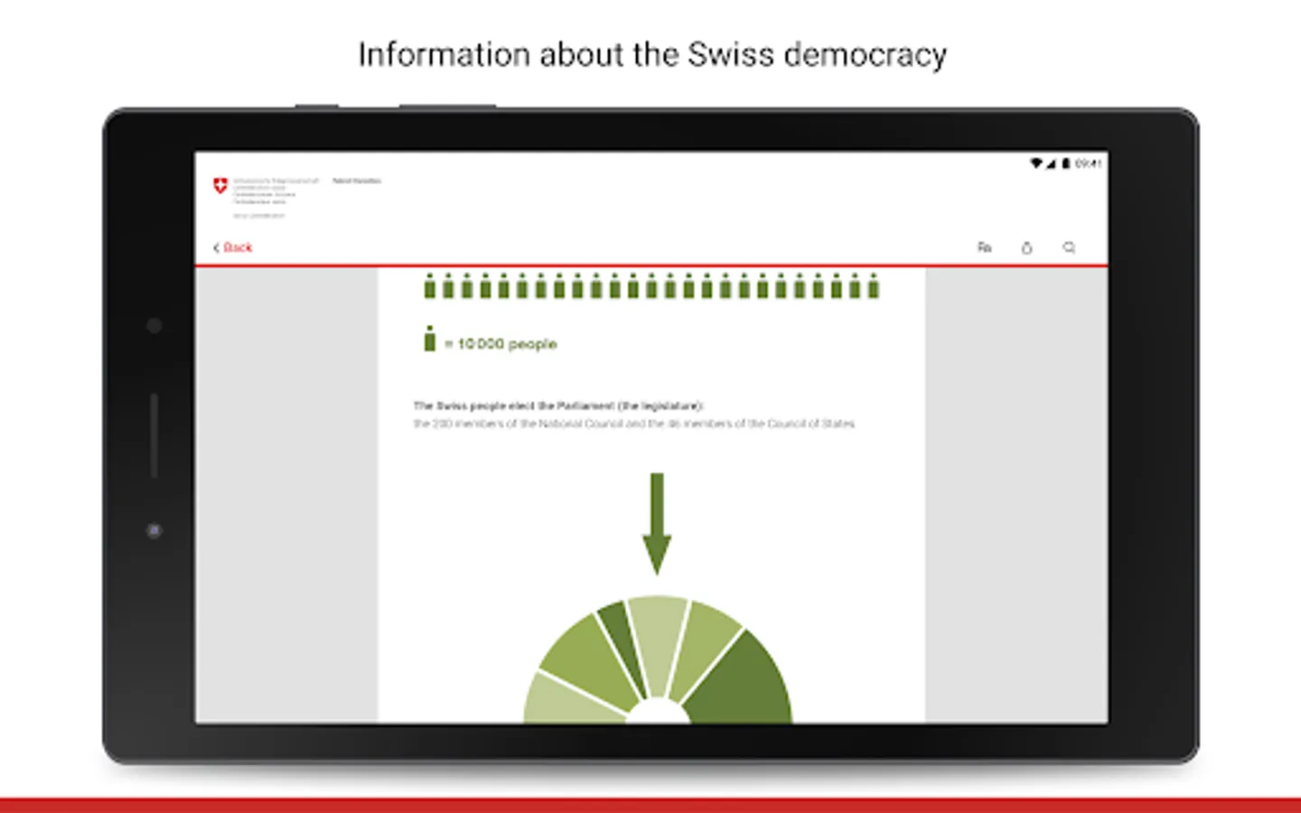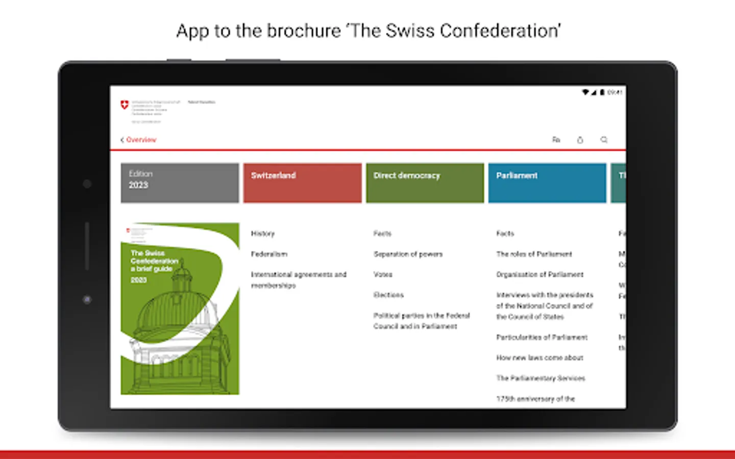 How does a popular vote come about? Which parties are represented in Parliament? How is Switzerland governed? How are laws drafted? The answers to these questions can be found in the ‘CH info’ app. It is aimed at the general public, but is used by schools in civics lessons, local authorities recommend it to potential naturalisation candidates and businesses distribute it to their stakeholders.