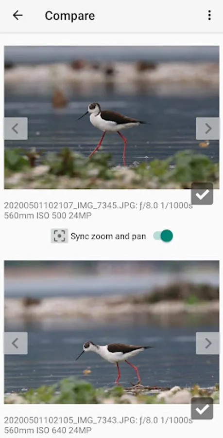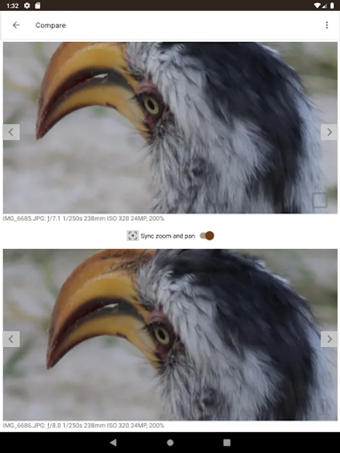 Trying to find the best out of a series of 15 photos shot in sequence? This app shows two photos on the screen in order to compare them. Zooming and panning is synchronized, so focus and composition can easily be compared.