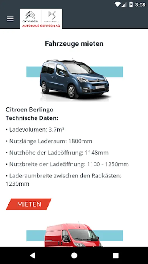 With the official Autohaus Gertsch app you can now easily use over the phone our various services. You quickly need a suitable rental vehicle? New vehicles and accessories can be comfortably reserved from home and rented.
