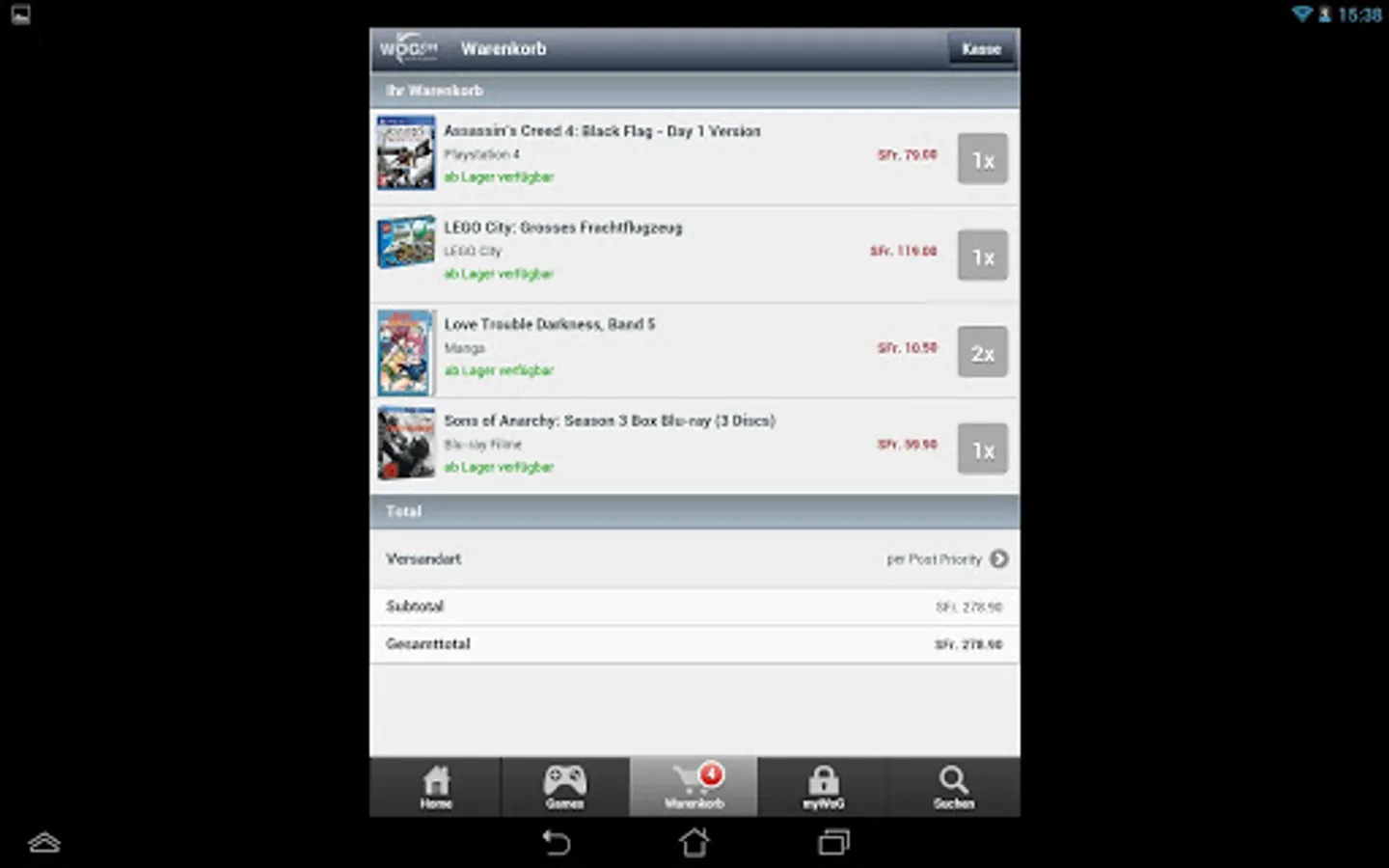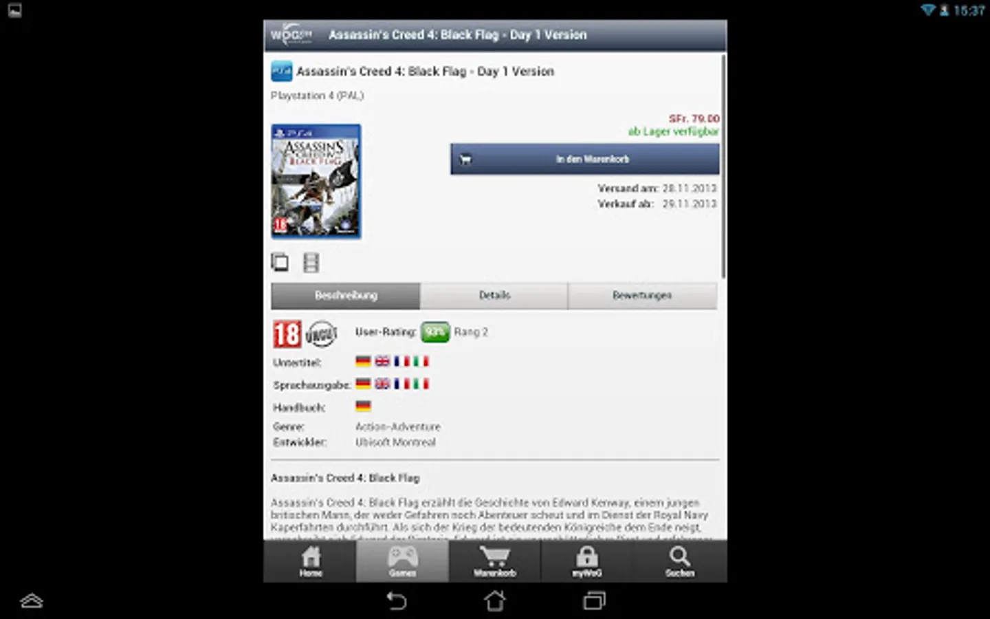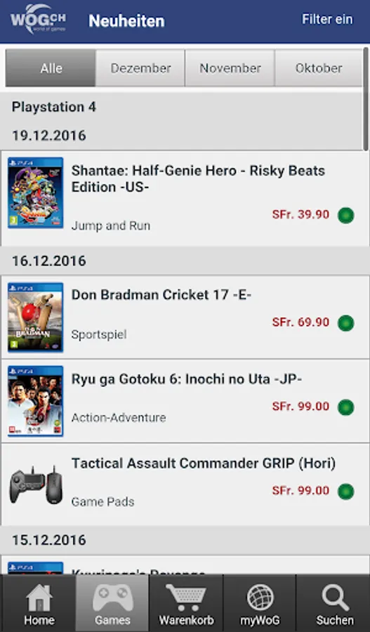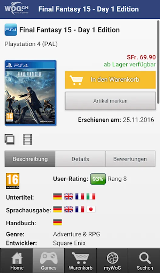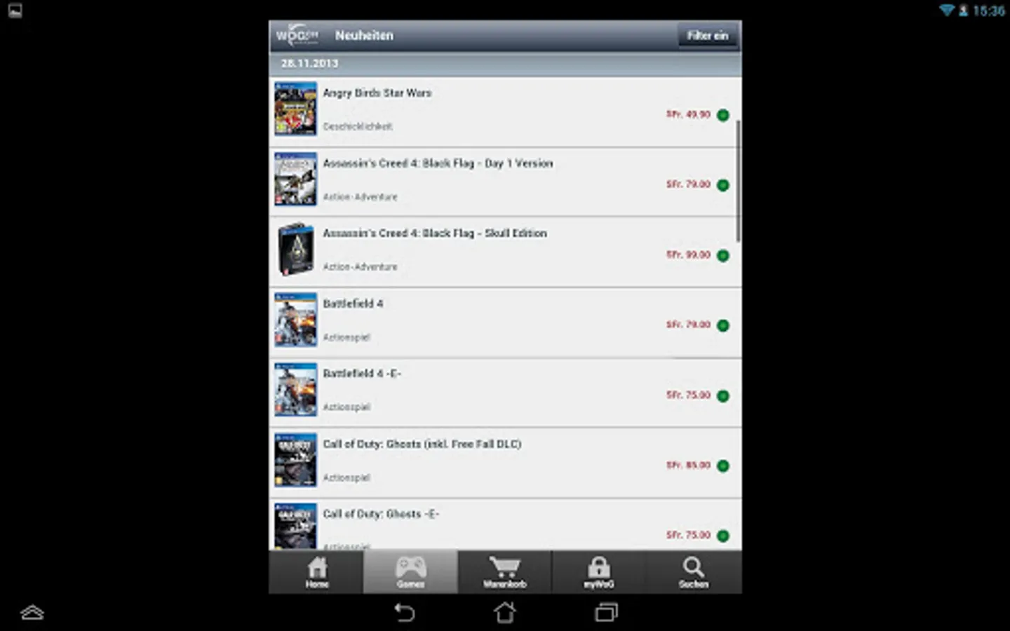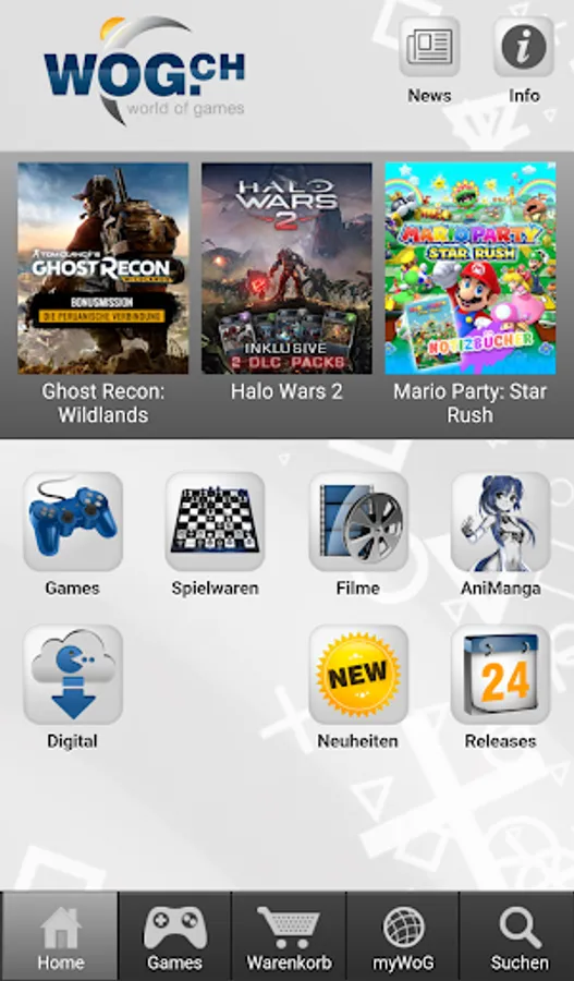 With the WoG.ch App from World of Games, Android users can simply and in comfort, search for products at the Swiss Game-Shop “wog.ch“. Learn about new releases. Read ratings from other customers and place orders quickly and directly. Wog.ch-customers have full access to their Shopping Cart, current orders, invoices and their customer data.