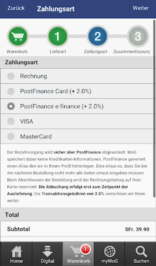 - Shopping basket for online purchases (only for orders in Switzerland or Lichtenstein)