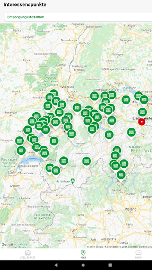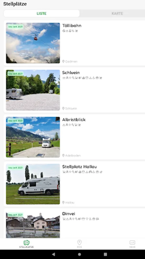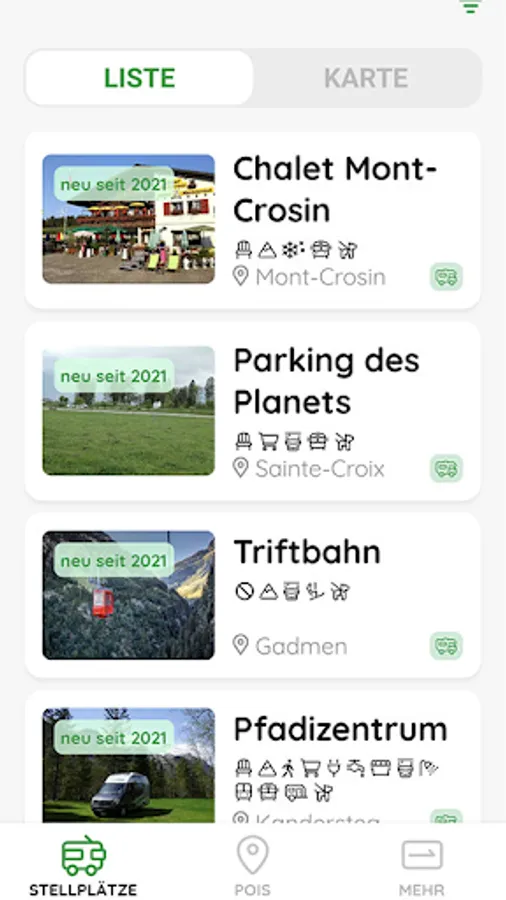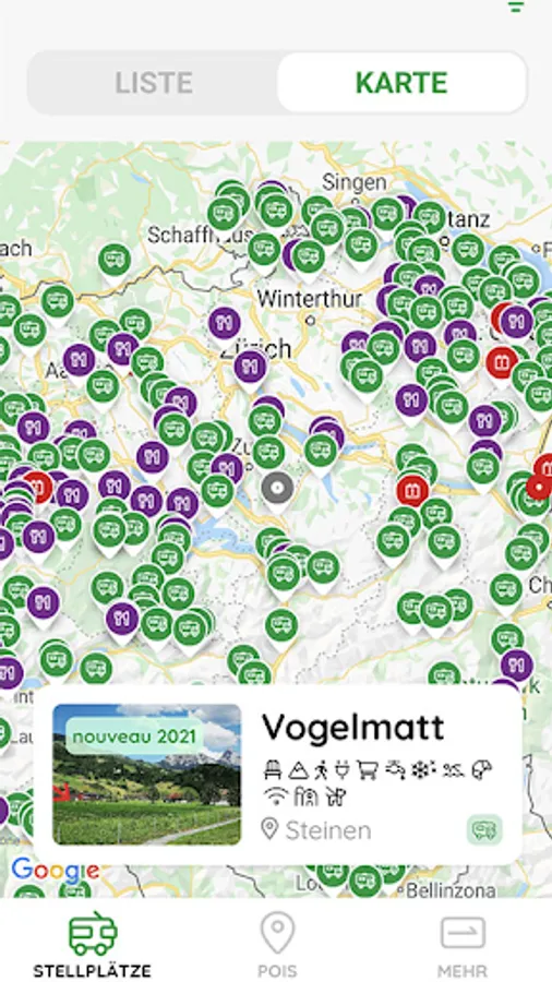 All over 300 official Swiss motorhome parking spaces at a glance.